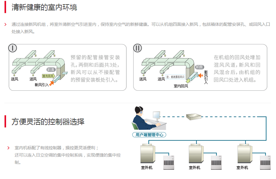 日立高效勁風系列采用直流變頻技術,高靜壓設計,送風量大、送風距離遠且可引入新風,可滿足生產車間、大型商超等密集人群場所的空調使用要求。
