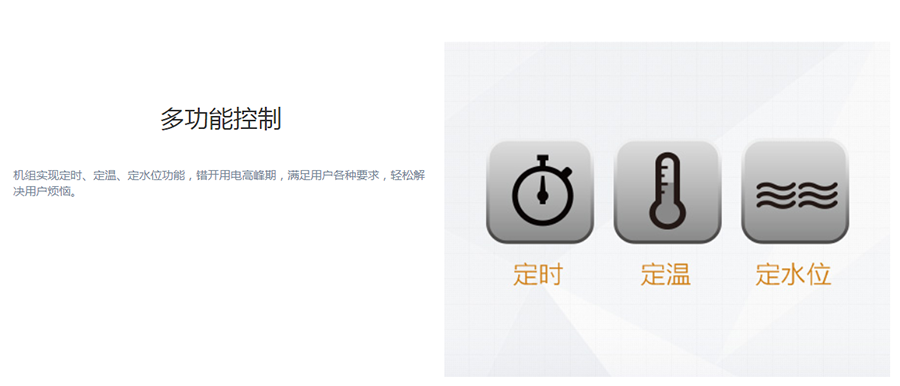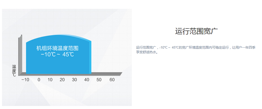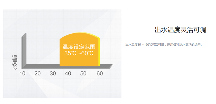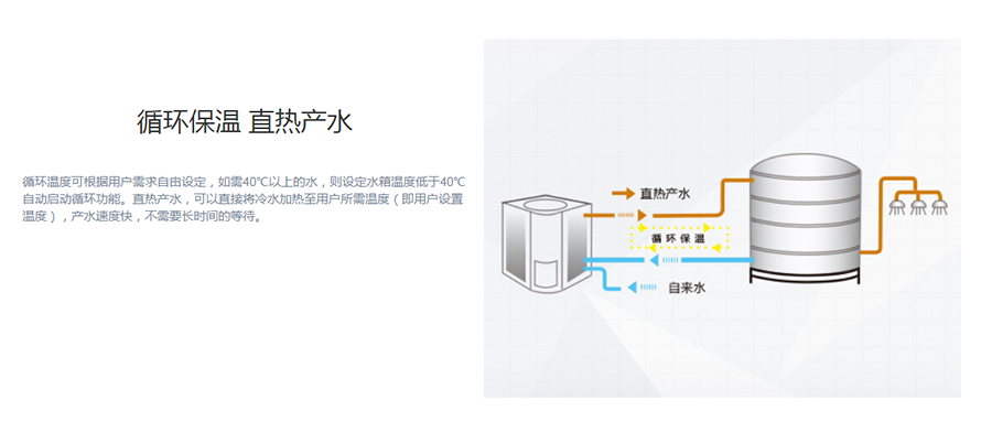 直熱產水,可以直接將冷水加熱至用戶所需溫度,產水速度快。運行范圍寬廣,-10℃-45℃可穩定運行。